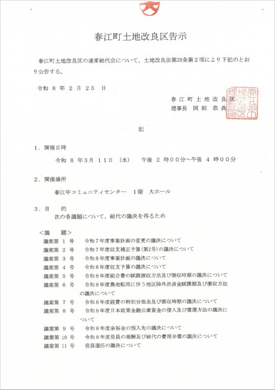 春江町土地改良区告示